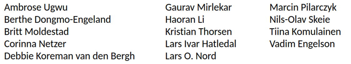 Lars O. Nord, Tiina Komulainen, Corinna Netzer, Gaurav Mirlekar, Berthe Dongmo-Engeland, Lars Eriksson